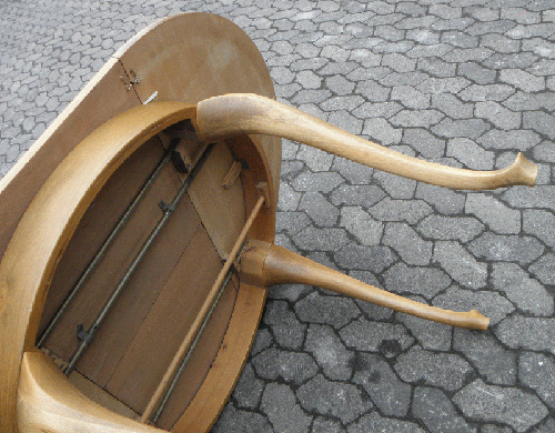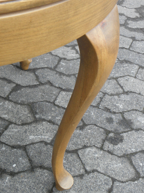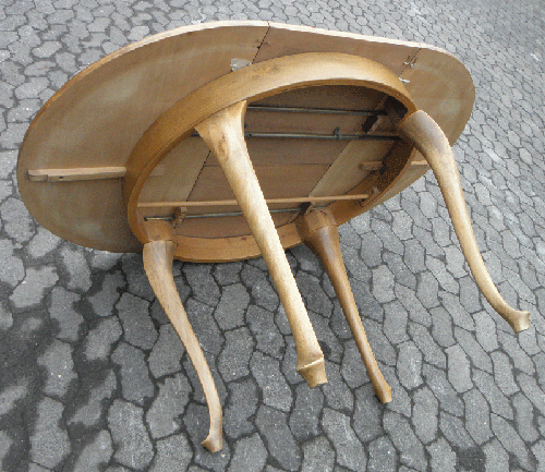 Der Tisch wurde in einer Schreinerwektstatt überholt und für